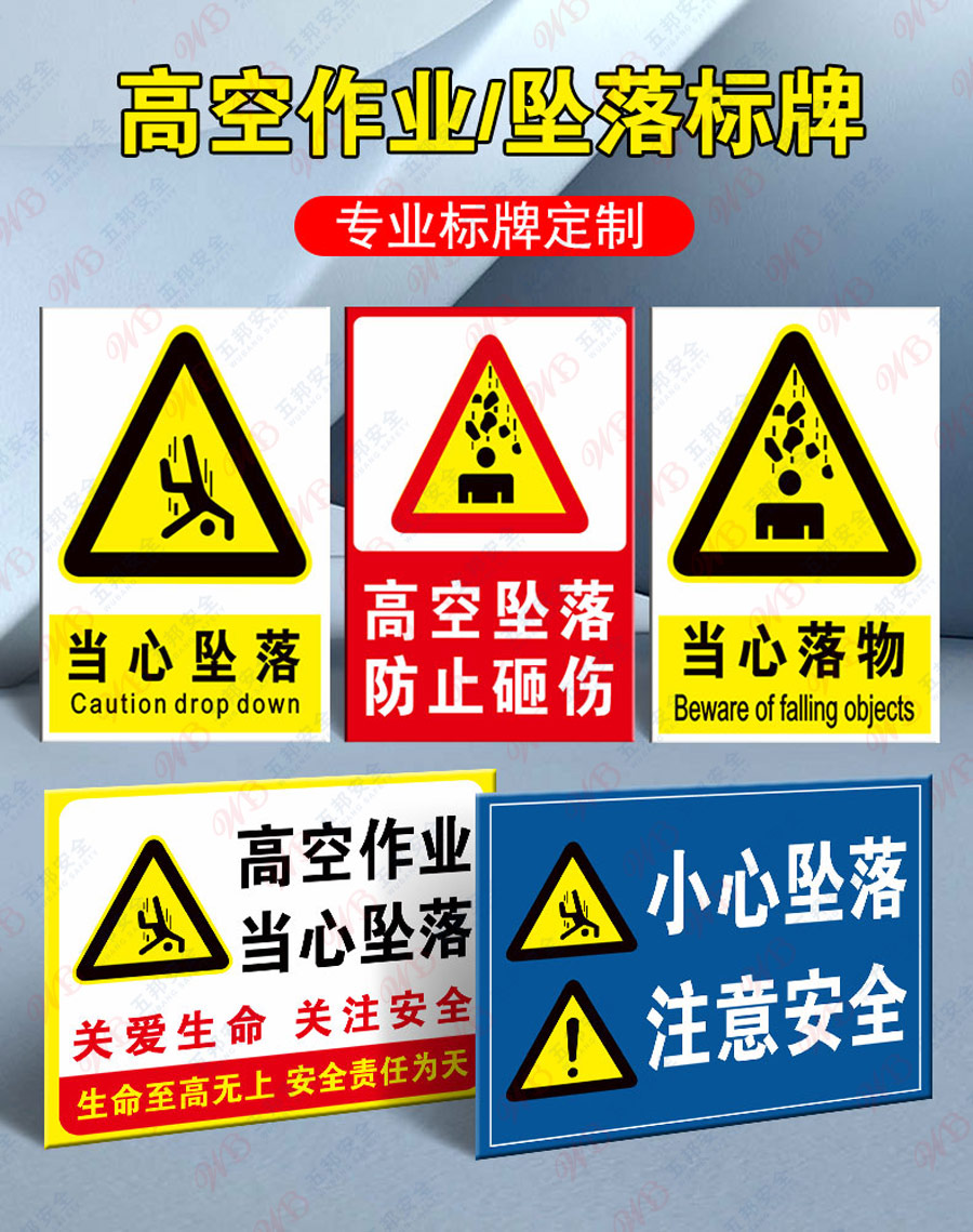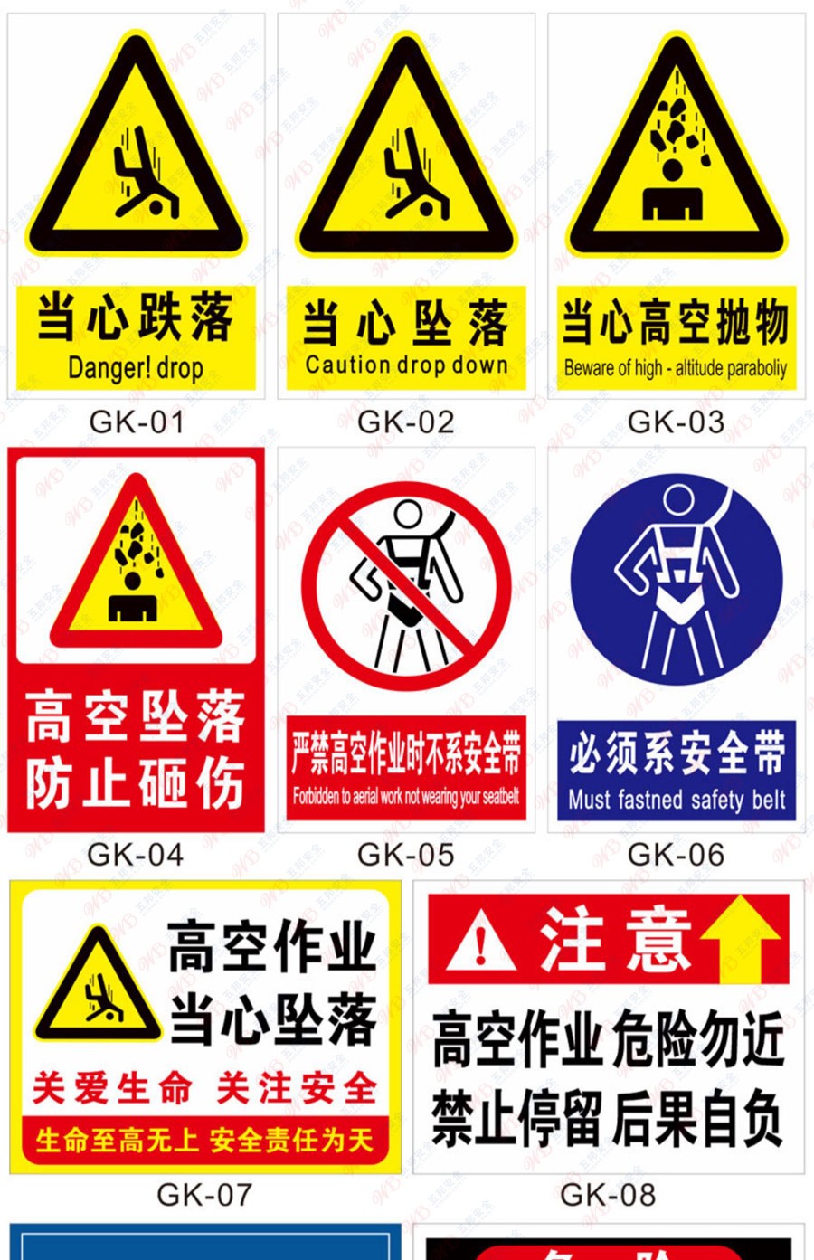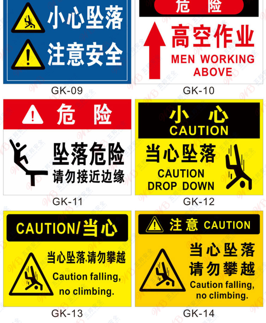 在特定區域,“當心墜落”警示牌格外醒目。它嚴厲警示著嚴禁高空作業不系安全帶,提醒人們小心墜物落物的危險,防止被砸傷。“請勿攀越”的標識清晰明確,時刻告誡人們不要做出危險舉動。這些安全警告、警示標識牌、標志牌、提示牌,如同無聲的守護者,以醒目的存在守護著人們的安全,不斷提醒人們在該區域要時刻保持警惕,嚴格遵守安全規定,避免意外的發生,確保生命安全和作業的正常進行。