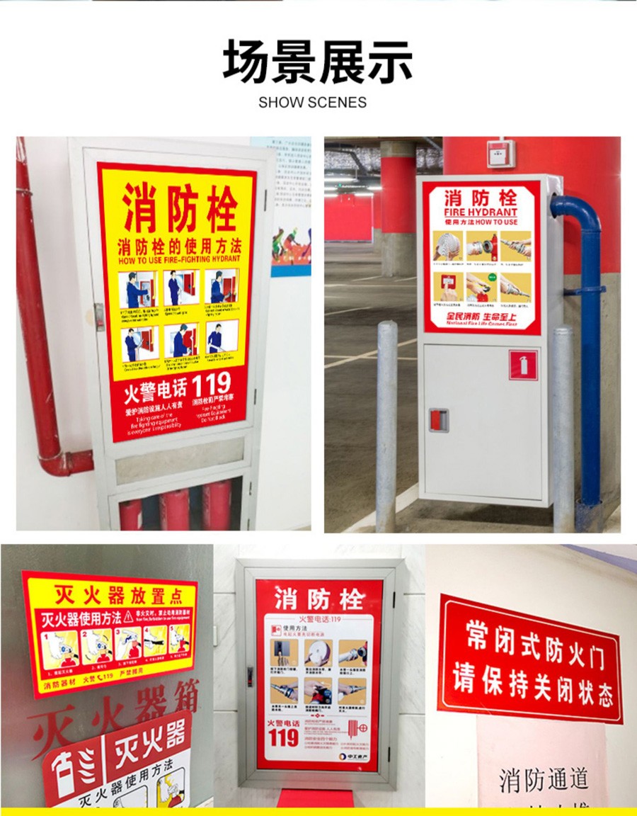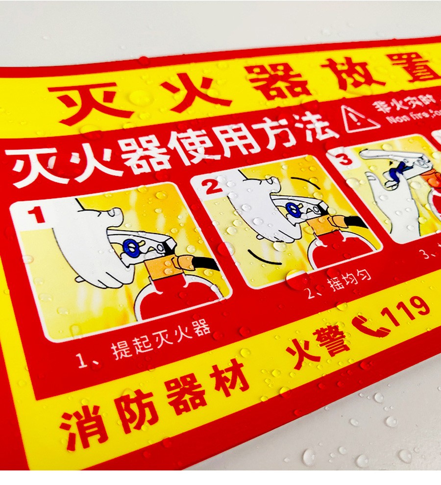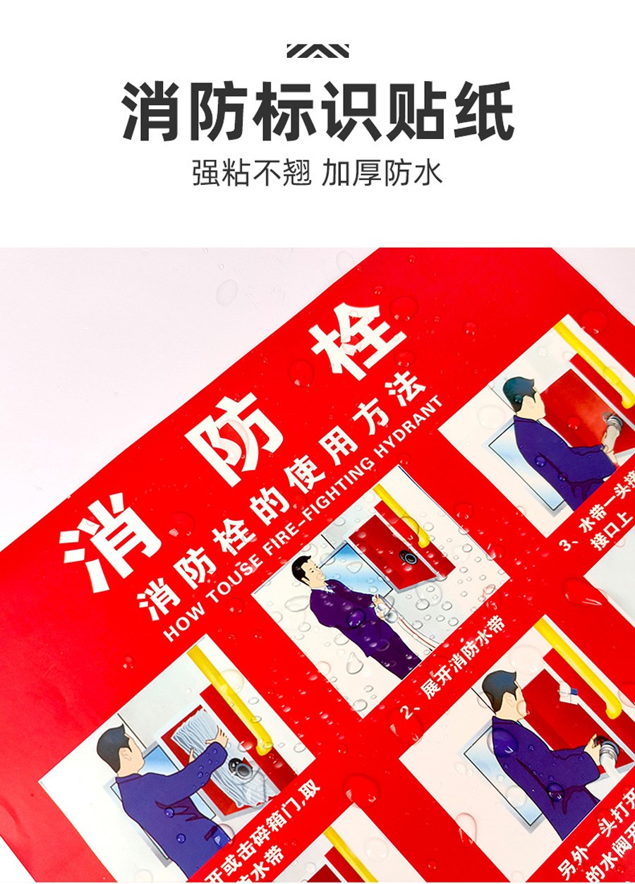 本款消火栓使用說明貼紙采用優質 PVC 材料制作,防水、耐磨、耐撕,不易損壞。貼紙內容清晰明了,以簡潔直觀的圖文形式展示消火栓的使用步驟,讓您在緊急時刻能夠快速掌握操作方法。適用于各類場所的消火栓箱,是保障消防安全的必備標識,為您的生命財產安全保駕護航。